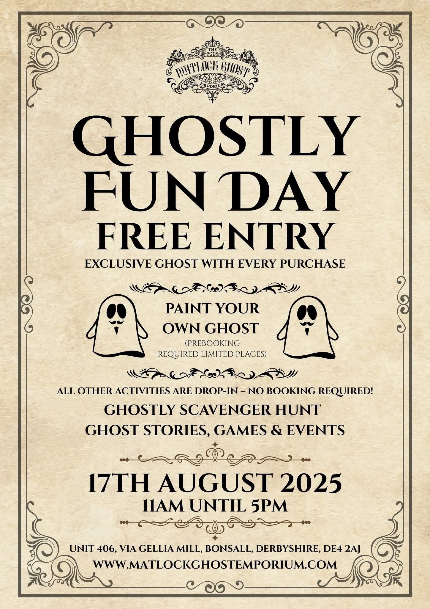 🎉 Join us for a Ghostly Fun Day at The Matlock Ghost Emporium! 17th August 2025, 11am Until 5pm Entry…